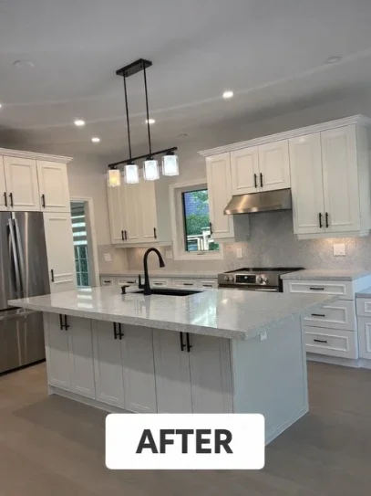 We refinish and repaint kitchen and bathroom cabinets to give them a fresh, modern look.